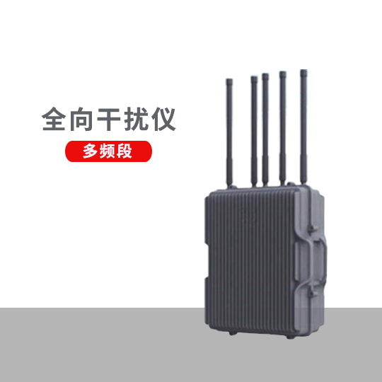 F-03D型多頻段全向干擾儀,由天線陣列、全向干擾設(shè)備、信號(hào)處理設(shè)備組成,系統(tǒng)采用窄帶寬小功率精準(zhǔn)打擊和大功率全向干擾相結(jié)合的方式,對(duì)黑飛無人機(jī)遙控鏈路、圖傳鏈路和導(dǎo)航信號(hào)進(jìn)行干擾阻斷,迫使其迫降或驅(qū)離